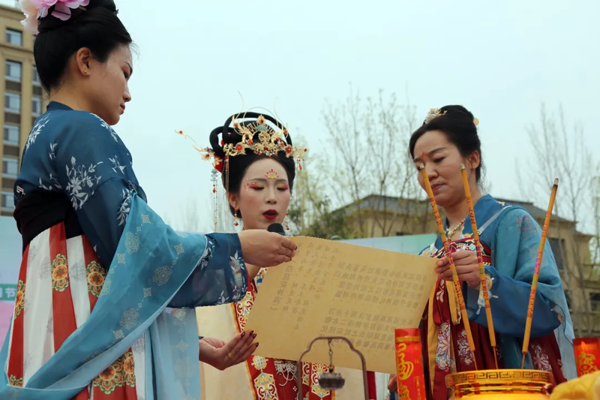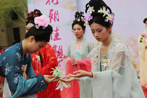 作为花朝节的重头戏,“十二花神祭祀”仪式庄重而典雅。十二位花神依次登场,衣袂飘飘,步履轻盈,仿佛从古画中走出。祭礼现场,主祭官带领众人依古礼焚香、献花、诵读祭文,表达对百花的敬意与对美好生活的祈愿。仪式感十足,令人仿佛穿越千年,感受到古人对自然的敬畏与热爱。